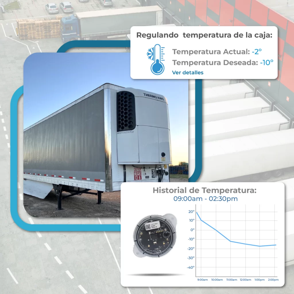 - Protección de la mercancía: Monitorea la temperatura de tus cajas refrigeradas en tiempo real, asegurando que tus productos se mantengan en condiciones óptimas.